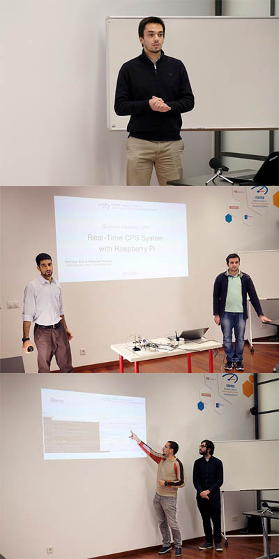 Henrique Reis and Rostyslav Khoptiy developed the project entitled "Real-Time Cyber Physical System with Raspberry Pi", under the supervision of Paulo Baltarejo. The two students developed a prototype of a cyber physical system using a Raspberry Pi board. In the prototype, several temperature sensors and motors were integrated in order to monitor and control the temperature of a closed environment. Their work can be seen at CISTER's YouTube channel.